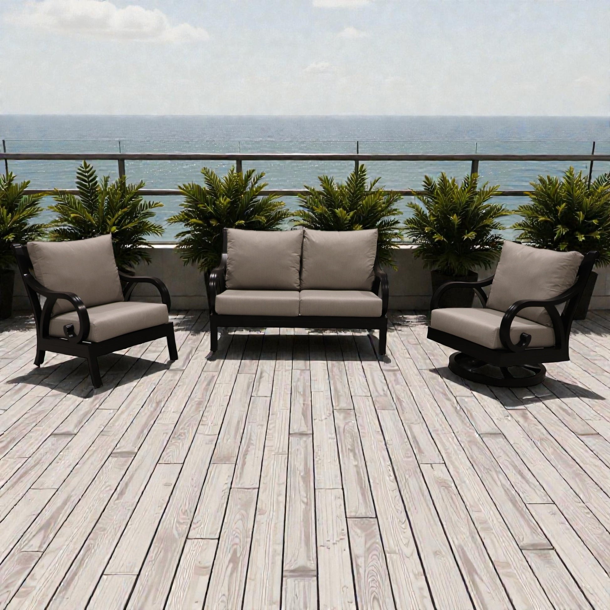 Cabana Coast Milano Loveseat with Chair and Swivel Set
