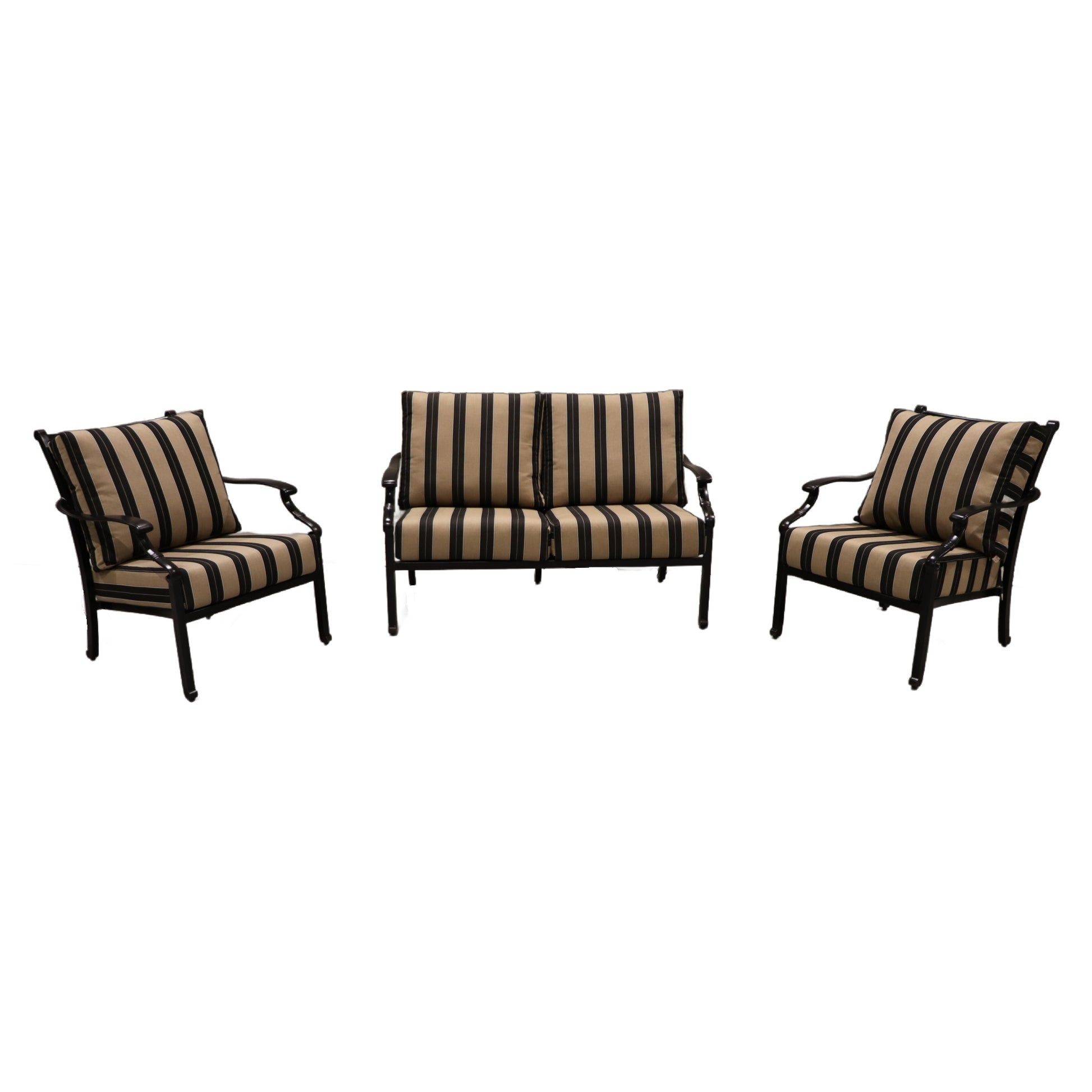 Elevate your outdoor space with the timeless elegance of the Cabana Coast Verona collection. This sophisticated loveseat and chair set showcases ornate cast iron-inspired design with intricate basket weave seating and beautifully detailed medallion patterns adorning each chair back. Perfect for creating an inviting patio retreat, the Verona set combines classic aesthetics with enduring quality, transforming your garden into a refined outdoor sanctuary.
