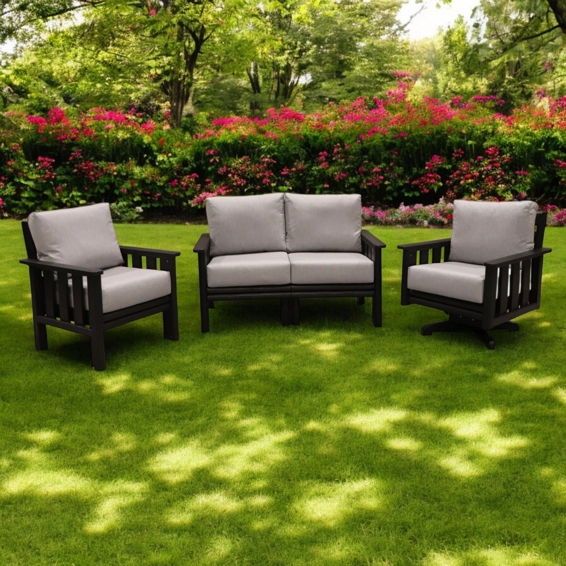 Don't settle for the ordinary when you can have this extraordinary three piece seating set from CR Plastics! Recycled and designed to be heavy-duty, it includes comfy Sunbrella cushions—you won't want to sit anywhere else!