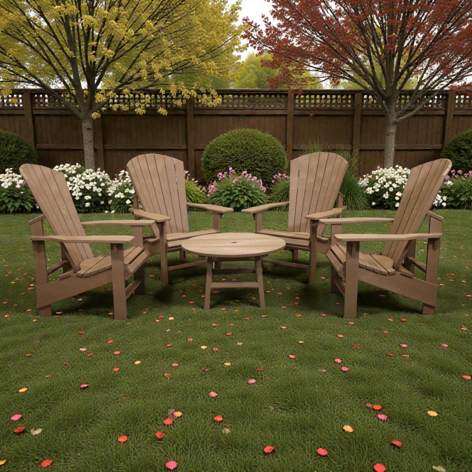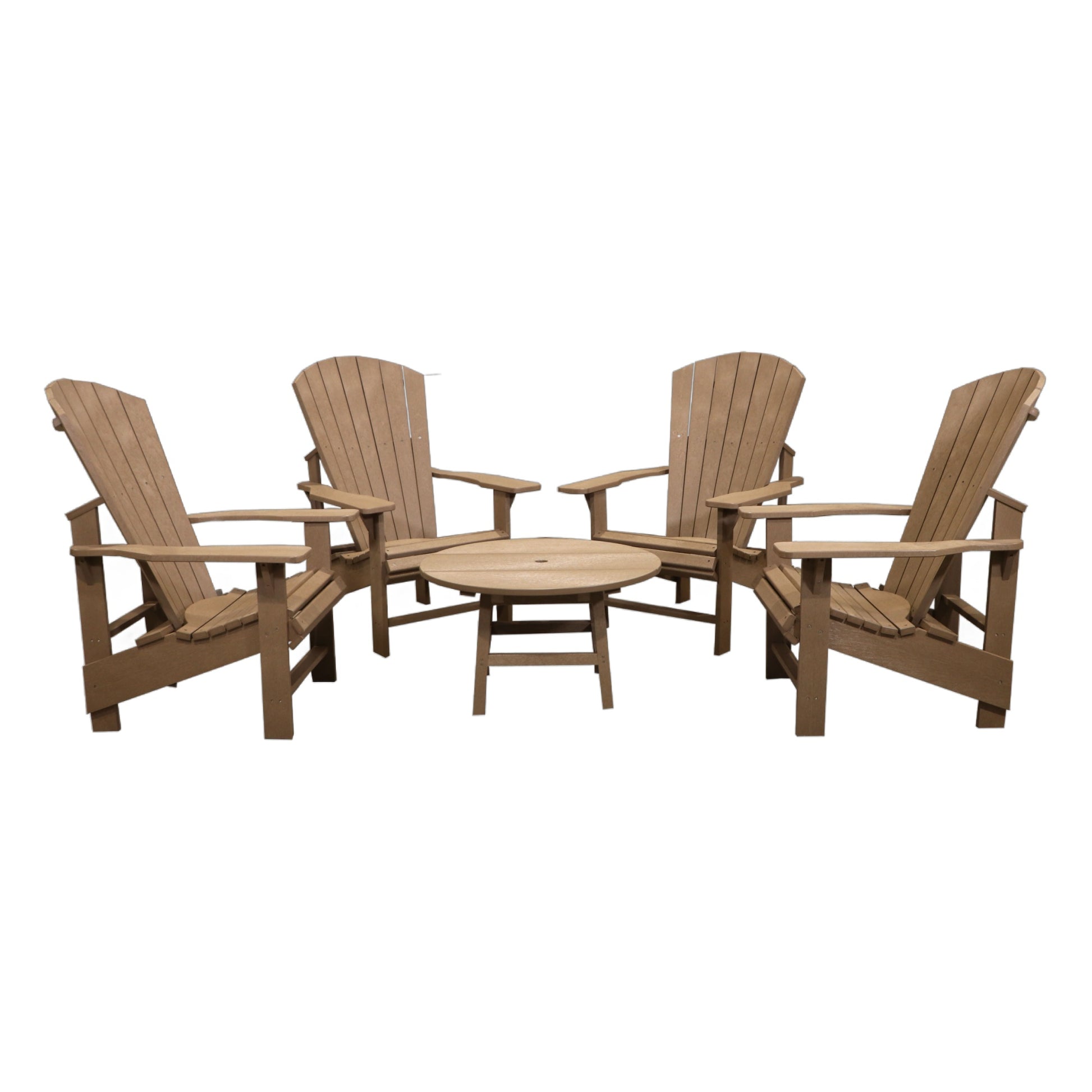 Set includes: 4 x C03 Upright Adirondack Chairs +1 x Cocktail Table (5pcs. total)